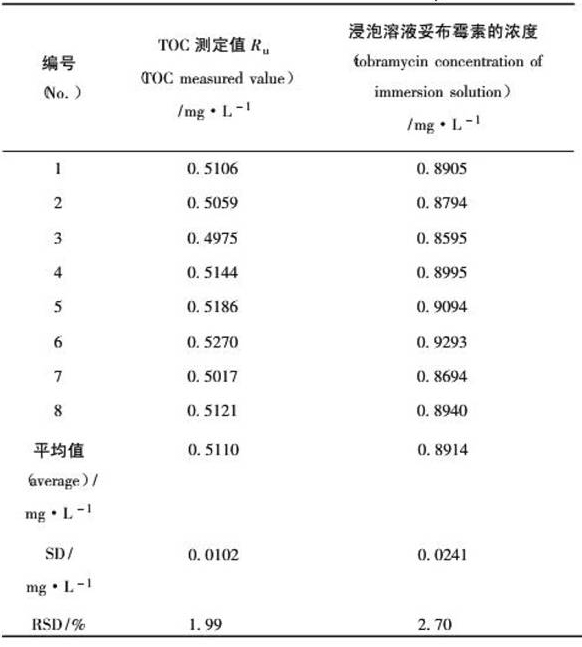 要顯示TOC法的精密度和準確度,以含10-6碳的標準品溶液連續檢測10次。這里選用此碳濃度來評估精密度和準確度是因為通常殘留物的 TOC限度一般為此水平左右。在此 TOC水平,精密度為 1%,準確度為±5%。